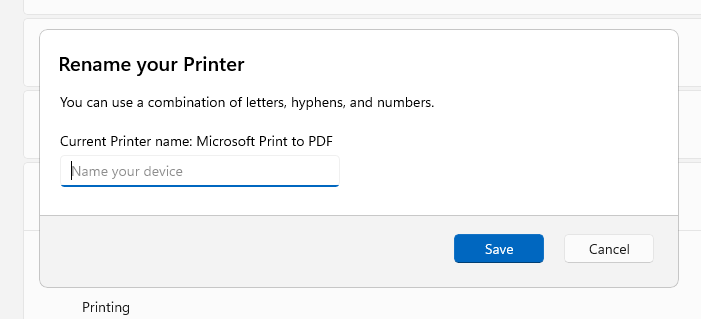 - We’ve updated the dialog when renaming your printer under Settings > Bluetooth & devices > Printers & scanners to match the Windows 11 visuals.