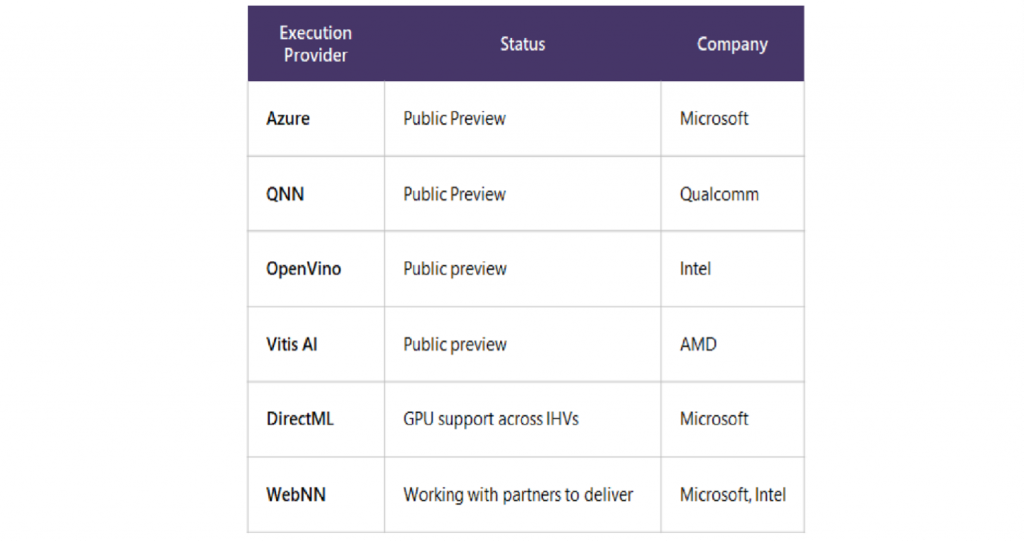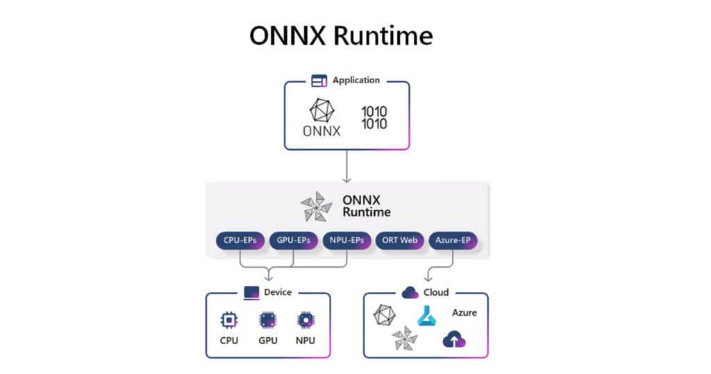 ONNX Runtime is a cross-platform, cross-IHV inferencing engine that allows developers to inference across platforms (e.g. iOS, Windows, Android, Linux), across client and cloud devices (CPU/GPU/NPU) or hybrid inferencing between client and Cloud (Azure EP). EPs are Execution Providers which allow targeting of specific hardware devices on specific IHV hardware (i.e. Qualcomm QNN EP for the Windows on Arm Surface Pro 9 5G) or using DML EP on Windows devices to abstract away which IHV or device is being used.