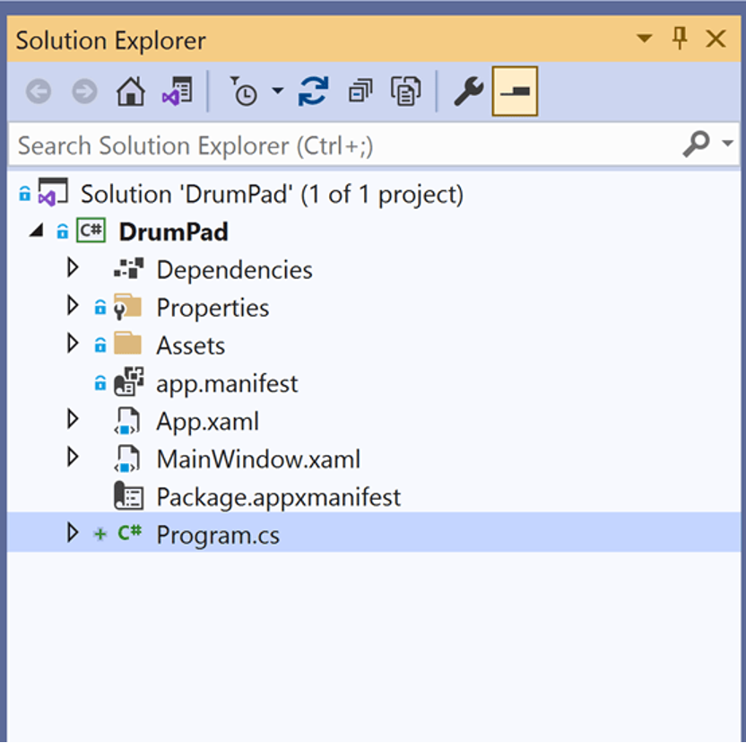 - Double-click on the project name in Solution Explorer: