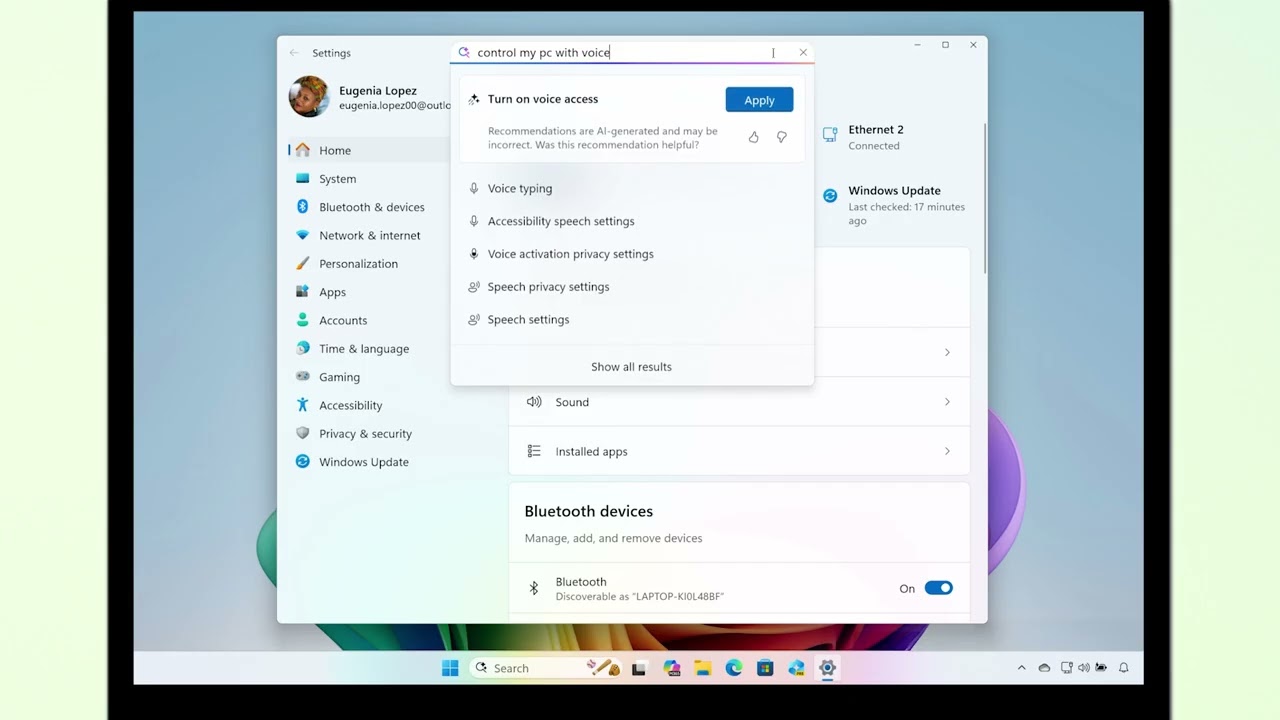 - When settings are unable to be adjusted by the agent, improved Windows search will surface relevant settings to help you get closer to what you’re looking for, faster.