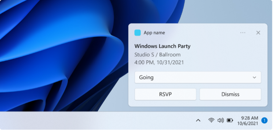 In Windows App SDK 1.1, we introduced the ability to create and send notifications from your application or a cloud service. App notifications can be used to inform the user of application status or state changes, or to prompt the user to take action with engaging and rich UI.