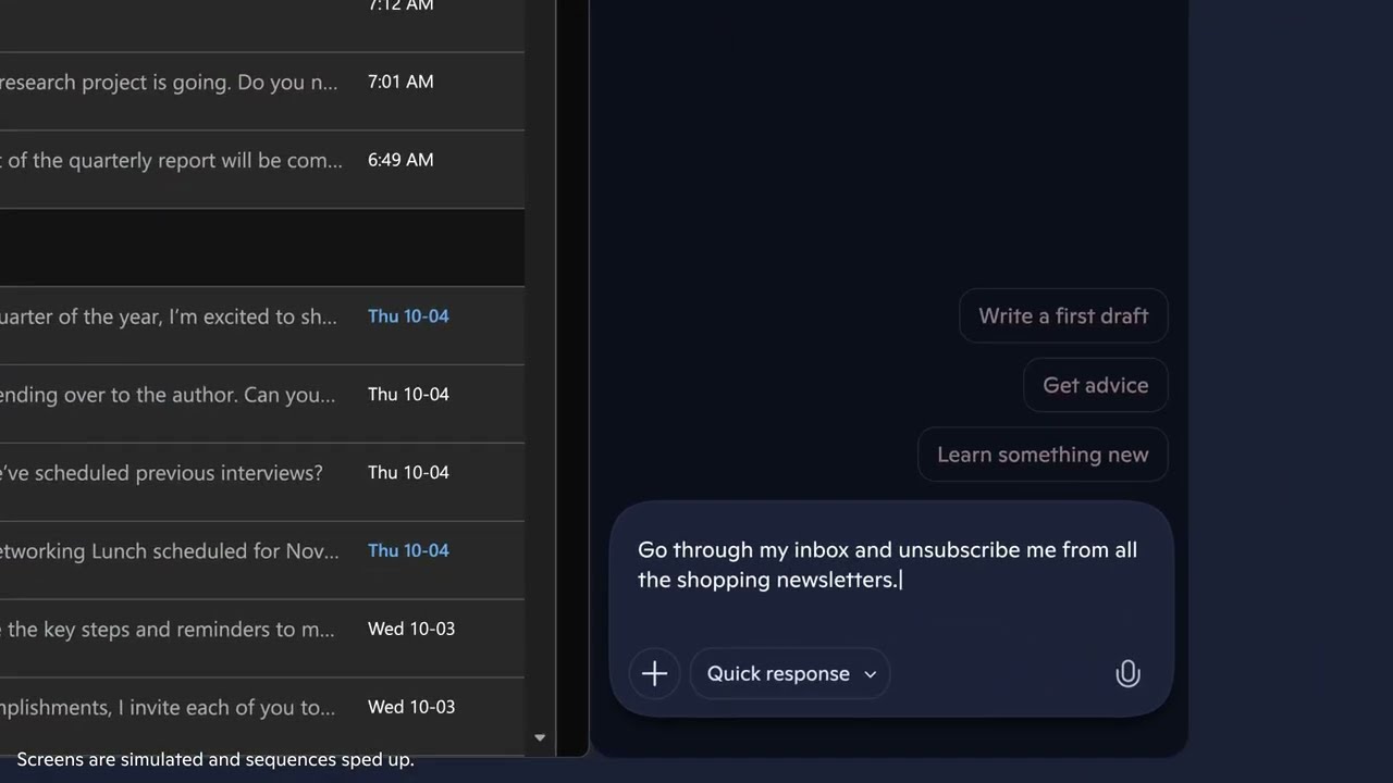 You can also use chat to perform complex actions that give you back even more time. Trying to curb your shopping habit? Have Copilot go through your inbox and tell it to unsubscribe you from all those tempting shopping newsletters. Or Copilot can make that restaurant reservation freeing you up to focus on planning the rest of your evening out. Soon, you will also be able to use your browser to talk to Copilot and complete these complex tasks. Currently, Copilot Actions in Edge is available for free in a limited preview in the U.S. only.